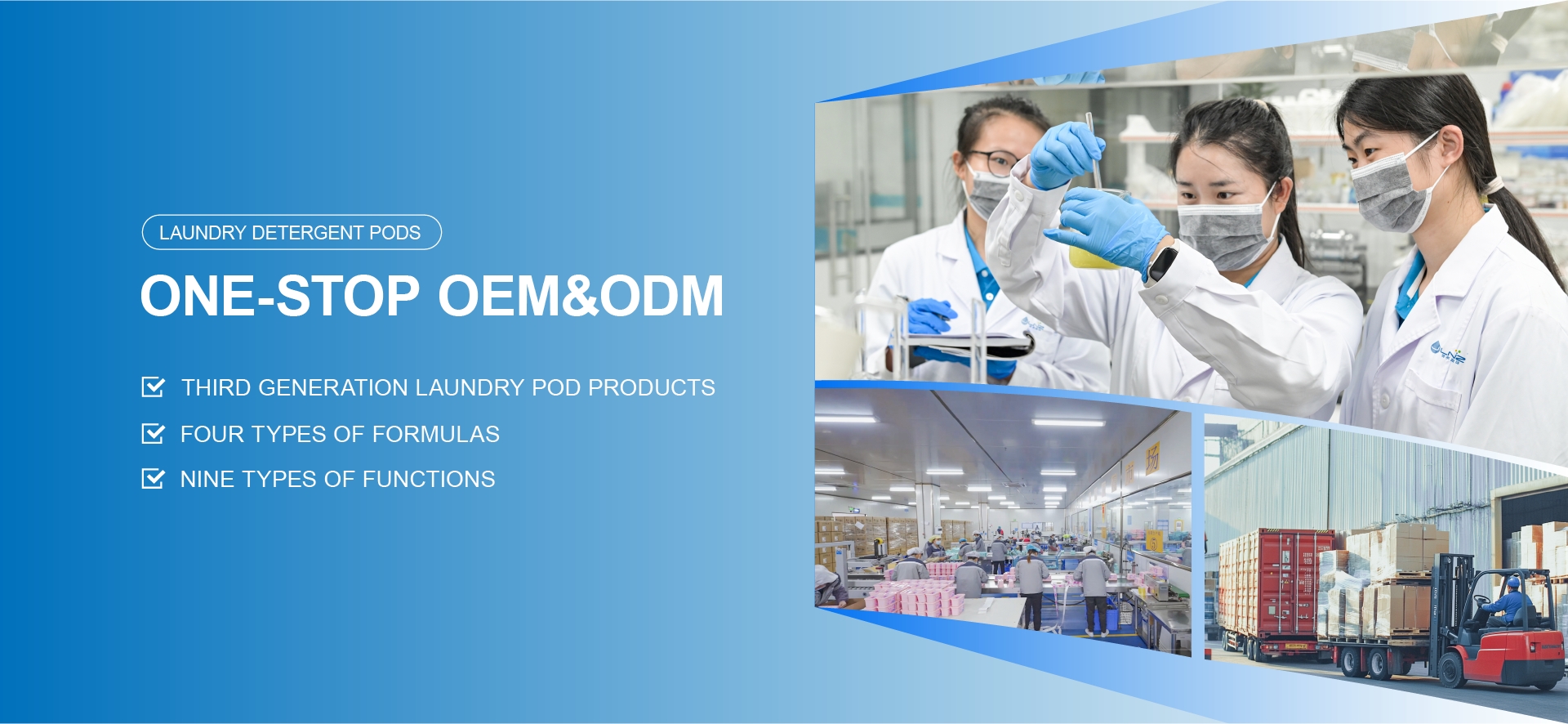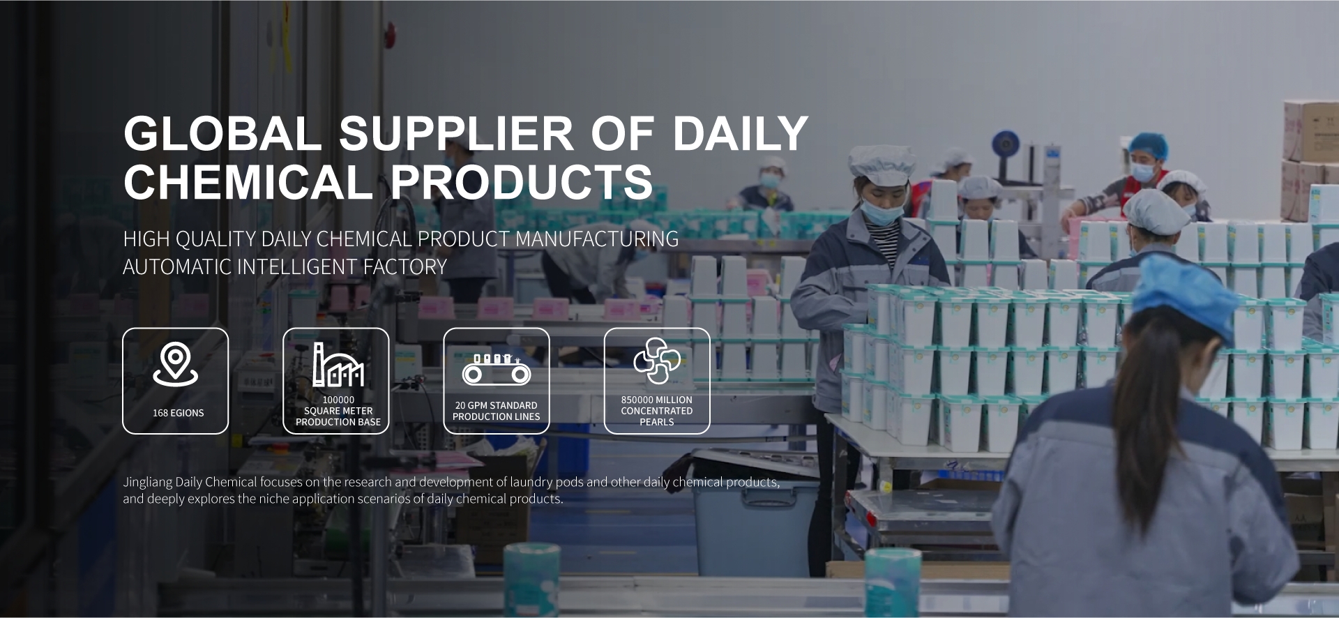 AI automatic generation Description: our company is located in areas with convenient transportation and dev100000 Square Meters Production Base. Over 20 indepently developed International GMPStandard Production Line Every Year, We Customize Over 8.5 Billion Detergent PodsWorldwide. We have Long-term Partnerships with International Brand Raw Material Suppliers.Such as Swiss Chihuaton and Firmenich. Our Independently Developed PVA-specific Water.soluble Film Dissolves Quickly and Has Zero Residue. Ensure Product Quality, Safe, andConvenient System Guarantee.
